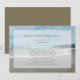 Denna efterbröllopsinbjudan har en vacker strandscen. Det är den perfekta inbjudan till efterbröllopsfest efter ett litet strandbröllop eller när du vill ha ett bra strandtema på dina efterbröllopsinbjudningar. Denna efterbröllopsdesign låter dig placera namnet på bruden och brudgummen högst upp, tillsammans med datum och plats för äktenskapet; och sedan finns det en plats för dina efterbröllopsdetaljer. Copyright henishouseofpaper