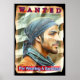 En humoristisk EFTERLYST PÅ MINNESLAPPSKORT med ett porträtt av en man som efterlyses för 'att ha burit en bandana.'