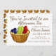 Designen har en originell illustration av en miniatyr fruktpaj, fylld med vaniljkräm och toppad med färska blåbär, kiwi och jordgubbar. Perfekt för din matlänning. Anpassa med din information för en unik bröllopsdusch-, födelsedagsfest-, fikaparty-, bakförsäljning eller eftermiddagste-inbjudan.