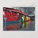 Ljusröd fiskebåt och färgstarka bojar reflekterar i vatten vid fiskermans terminal, Seattle, WA.