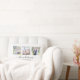 Kudde med 3 fyrkantiga bilder arrangerade sida vid sida på både framsidan och baksidan, totalt 6 bilder som du kan ersätta med dina egna bilder mot en vit bakgrund. Du kan också lägga till ditt efternamn i ett snyggt kalligrafiskt teckensnitt och det år som det etablerades. Perfekt för heminredning, nygifta, familjeminnen, osv.