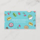 Visitkorten i lycklig färgar för en bageriägare, en konditor, en bagare eller liknande presentera klotter av bakade godor och bär.