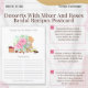Denna eleganta receptkort för bröllopsfesten har handmålade akvarellrosor och en charmig mixer, omgiven av en samling läckra efterrätter. Den lekfulla och inbjudande designen, accentuerad med mjuka färger och konstnärliga detaljer, skapar en varm, romantisk stämning. Det är perfekt för att samla nära och kära för att dela sina favorit recept, hedra den blivande bruden i en firande fylld med glädje, kärlek och söta minnen. Detta kort fungerar som en vacker inledning till en dag som lovar att bli oförglömlig.