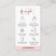 Var säker på att dina kunder vet hur de ska ta hand om läppar efter behandling med nål fyllnadsmedel med ett efterbehandlingskort med personlig läppfyllnadsfyllmedel. Detta vårdkort för femininininjektioner innehåller ikoner för varje steg, modernt typsnitt och utrymme för logotypen. Detta rosa och affärskort för vita narkosläkare är det perfekt sättet att låta dina kunder veta hur de ska ta hand om läppar efter behandling.