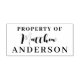 Anpassad design har "EGENDOM OF [DITT NAMN]" i skriven skrift och har redo att anpassa sig till namn med hjälp av fält.