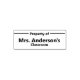 Detta är ett frimärke som lärare kan använda att identifiera bokar och andra egendom som tillhör till sitt klassrum. Det står Egendom i överteln. Den andra budgetposten gäller lärarens namn. I grund står det klassrum. Teckensnittet är fet.