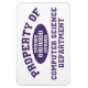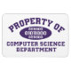 Egendom of Computer Science Department - mörk lila collegiate stil lettering with binary code Xs.