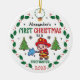 Julprydnadsföremål i eldstrid - dubbla-sidig, anpassningsbar, runt keramisk Julgran-dekor med citatet "Första jul som brandman". Utsmyckningen kan anpassas till det önskade Namn och År, och du har till och med möjlighet att lägga till ditt foto på baksidan av utsmyckningen (eller lämna det som är fallet med den allmänna bilden av vinterlandskapet, som visas upp för dig). Perfektens presentidé för julens helgdagar. Se till att kontrollera den ensidiga versionen av prydnadsverket, liksom alla andra yrken med denna design.