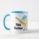 En egghead i basebollhatten och att hålla en baseball fladdermus med texten Egg Batter är en rolig matdesign för sportfantaster och kockar.