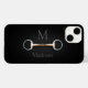 För hästar och hästälskare har den här personligens telefonfodral en trompe l'oeil-illustration av en kopparmun- och äggstötbit mellan ditt monogram och namn.