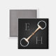 För hästar och hästälskare är magneten en trompe l'oeil-illustration av en kopparmun- och äggknölsnaffelbit mellan två monogram. Du kan antingen använda ditt första och sista initialer av ditt namn eller ett pars initialer.