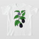 The eggplant is an interesting plant and kind of unusual. This design is a wonderful example of an eggplant with the the fruit hanging from some green leaves and also a purple flower. This eggplant design looks great on this girls t-shirt. Perfect for yourself or as a gift