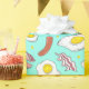 Färglöst papper inslagning av mönster till frukost i hand plockade, tryckt med bacon, korv och ägg.