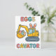 This playful Easter card features a cute construction excavator gathering colorful Easter eggs in its scoop, creating a creative Eggs Cavator theme that kids love. The combination of Easter egg hunting and construction vehicles makes this design especially exciting for young truck fans.
