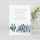 Denna bröllopsmall "spara vårt nya datum" har en rustik skifferblå vinterfärg med tallar och akvarellfläckar. Redigera enkelt *mestadels* texten på denna inbjudan för att bättre passa dina behov. Lägg till ditt foto på baksidan för en personlig touch.