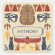 Det här klistermärket är redot att vara personlig med namn i ljusblå text inuti och egyptiska cartouche stil ram. Namnen åtföljs av en samling bilder som inspirerats av gammal Egypten. Mina illustrationer skildrar guden Thoth, kattens gudinna Bastet, skalbaggen i helig, livets tecken, drottning Nefertiti, Kung Tut, Anubis med mera. Illustrationerna är i skuggor av blått, orange, rött, gult och brunt och ställs in mot sandbakgrunden i färgaden.