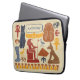 Laptop sleeve är redot att vara personlig med ett namn i ljusblå skrift som satts in i och egyptiska cartouche stil ram. Namn förekommer på båda sidor om mugg och åtföljer ett kollage av grafik som inspirerats av gammal Egypten. Mina illustrationer skildrar guden Thoth, kattens gudinna Bastet, skalbaggen i helig, livets tecken, drottning Nefertiti, Kung Tut, Anubis med mera. Illustrationerna är i skuggor av blått, orange, rött, gult och brunt som ställs in mot sandbakgrunden i färgaden.