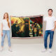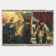 Egyptisk drottning med röd drake på axeln. Drottningen håller ett universum. En svart lejon med vingar ligger på ett berg med en sfinx bakom.