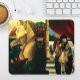 Egyptisk drottning med dagon som håller ett universum i handen. En svart vingad lejon på ett klipp med en sfinx bakom.