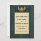 Meddela din speciella dag med detta egyptiska bevingade scarabé-guld "Save the Date"-kort, en slående fusion av urgammal symbolism och förfinad elegans. Den centrala gyllene bevingade scarabén - en tidlös symbol för skydd och återfödelse - vilar mot en djupt marinblå papyrusinspirerad bakgrund, infattad med invecklad hieroglyfkantrand. Det rika gulddekoren kontrasterar vackert mot den mörka bakgrunden och frammanar en känsla av kunglig storslagenhet. Perfekt för par som söker ett lyxigt egyptiskt bröllopstema som hedrar det kulturella arvet samtidigt som det omfamnar modern sofistikation.