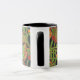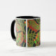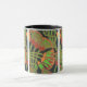 Ett mycket snyggt vitt kaffe mugg med en svart fälg och handtag och tre paneler av traditionell egyptisk design, från ett silke-skärmavtryck av Judy Adamson. Denna design finns även på en rad olika presenter och kläder.
