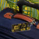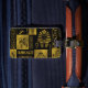Egyptiska guld- hieroglyphs och symbolcollage bagagebricka