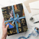Egyptiska hieroglyfer och gudom på svart presentpapper