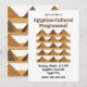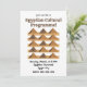 Egyptiska pyramider Mönster Kulturprogram Inbjudan ursprungligen designad av Nisha Prabhu. Helt anpassningsbar. Anpassa med dina uppgifter. Visuellt slående design: De ikoniska pyramiderna och hieroglyfmönstren fångar omedelbart uppmärksamheten och sätter en elegant och kulturellt rik ton för ditt evenemang. Kulturell betydelse: Med den tidlösa bilden av det forntida Egypten speglar inbjudan ett tema av historia, mystik och sofistikering, vilket gör ditt evenemang speciellt och minnesvärt. Unik och tematisk appell: Perfekt för kulturella festivaler, utbildningsprogram eller temafester, hjälper den till att förmedla evenemangets fokus och atmosfär effektivt.