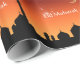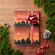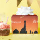 Eid hälsningillustration med en aftonhimmelplats: silhouette av en moské på en röd aftonhimmel.