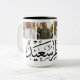 Fira glädjen av Eid med en gåva som fångar dina mest omhuldade minnen. Denna anpassningsbara keramiska mugg har elegant svart arabisk kalligrafi med texten "Eid Fitr Said" (Glad Eid al-Fitr) på en ren vit bakgrund. Ovanför kalligrafin kan du lägga till en kollage av dina favoritfoton på familjen - från en leende far i traditionell klädsel till ett lyckligt barn som firar högtiden. Med sin stilrena svarta kant och handtag är denna mugg den perfekta kombinationen av tradition och personlig touch för din morgonkaffe på Eid eller som en hjärtlig gåva till nära och kära.
