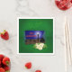 Eid Hälsning illustration: Ett 3D-hälsningskort med Eid hälsning inuti - människor med kameler på väg till moskén. Kortet är dekorerat med vit ros med droppar av vatten, båda på gröntens bakgrund.
