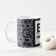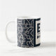 En elegant och modern svart mugg-design med ett skarpt islamiskt geometriskt mönster med ett fet "Eid Mubarak"-meddelande i mitten. Eleganten svartvit kontrast ge är ett tidlöst och sofistikerat utseende, skapar det en perfekt för dem som uppskattar minimalistisk estetik med ett kulturellt drag.