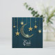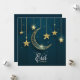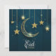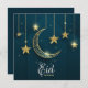 Anpassningsbar Modern Elegant Gradient Blue Eid Mubarak-hälsningskort med en guld-måne-crescerare och stjärnor. Du kan skapa Eid Mubarak-kort med Eid Mubarak önskemål för att fira Eid med dina kära.