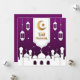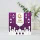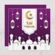 anpassade Elegant Lila Eid Mubarak Islamic Helgdag Card , Eid-hälsningskort med gyllene måne och stjärna med moské och lyktor.
