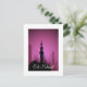 Ett vykort för eid-festive med många moskéer som täcker silhuetter i orkidébakgrund med cirkulär övertoning.