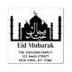 Silhouette av moské (masjid) och typografi med kalligrafi "Eid Mubarak"-bokstäver.