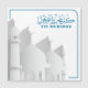 Den islamiska moskén är målad på ett unikt sätt med vit bakgrund och blå ram.