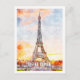 Eiffel Paris Frankrike Resa Plats Akvarell Vykort
