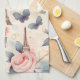 Kökshandduk med elegant mönster. Rosa ros, blå grått-butterflies och Eiffel torn. En Fransk temat mönster.