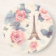 Sandstone underlägg med en elegant mönster. Rosa ros, blå grått-butterflies och Eiffel torn. En Fransk temat mönster.
