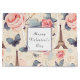 Giftväska med elegant mönster. Rosa ros, blå grått-butterflies och Eiffel torn. En Fransk temat mönster.