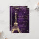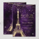 Eiffel torn chic guld glitter lila quinceanera inbjudningar