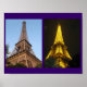 Foton från Eiffel Torn som tagits på dagtid och nattetid placeras tillsammans för att göra en vacker poster. Foton tagna av LRF.