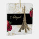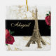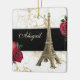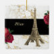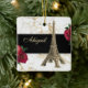 Denna vackra juldekoration i Eiffel Torn har en gyllene bild av Eiffel Torn på en svart, vit och guld marmorbakgrund med röd ros. Anpassa ryggen med namn och år!