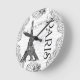 Svartvit illustration av Eiffel Torn och finare scrollsar. Paris är skrivet i stark skrift på sidan. Snygg design för gåvor och kort.