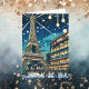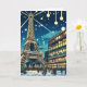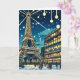 Julkort som visar Eiffel Torn i Paris, Frankrike i coolan tecknad stil i bok. Joyeux Noël.