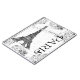 Svartvit illustration av scrollsarna Eiffel Torn och finare. Paris är skrivet i stark skrift på sidan. Fantastisk design för gåvor och kort.