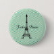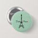 Enkel söt knapp och elegant med svart Eiffel torn Paris på grönt prickad mönster. Text: "J'adore Paris". Skapat med ett leende av ideella utformningar:-)!
