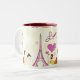Roligt Mugg som har Eiffel Torn och fashionabla unga kvinnor i Kärlek