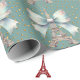 Gift-wrap med ett konstnärligt Eiffel Torn med båge på en säng av gult stenar. Anpassadets bakgrund färg.